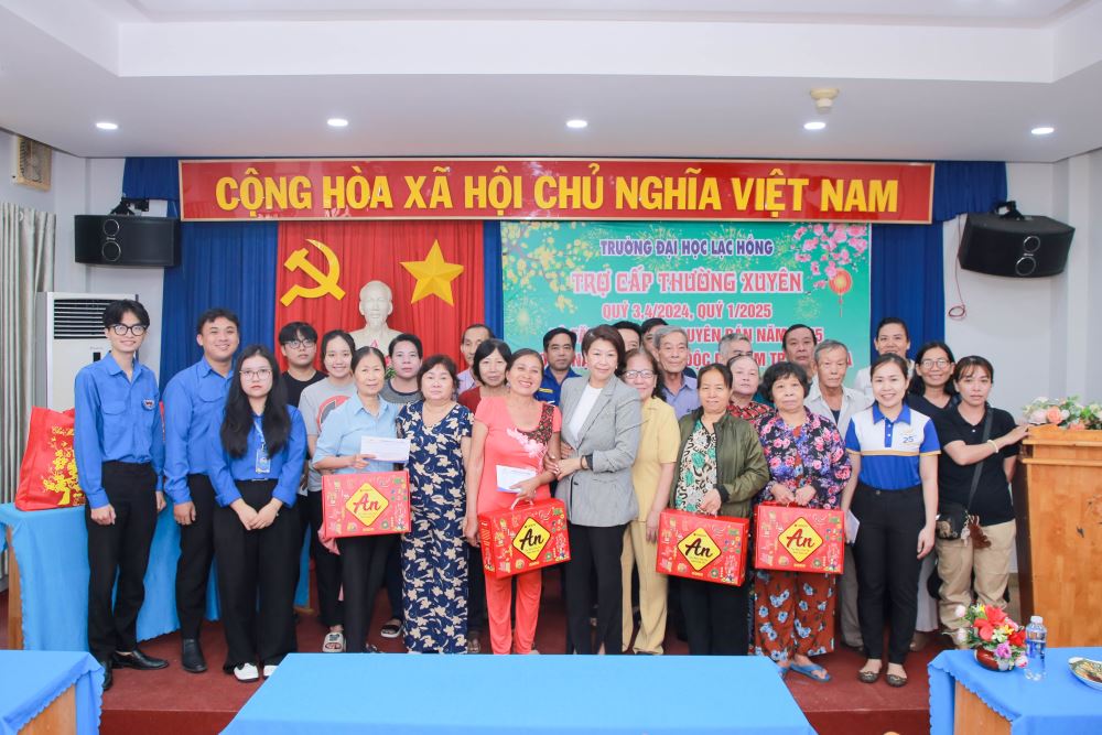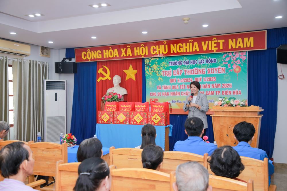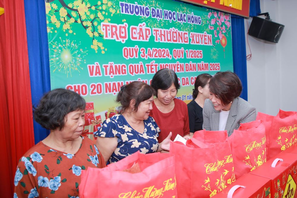 On January 7, 2025, Ms. Do Thi Lan Dai, Chairwoman of the Board of Trustees at Lac Hong University (LHU), led an initiative to bring support and Tet gifts to 20 victims of Agent Orange in Bien Hoa City. This heartfelt event also included the distribution of regular financial assistance for the third and fourth quarters of 2024 and the first quarter of 2025.