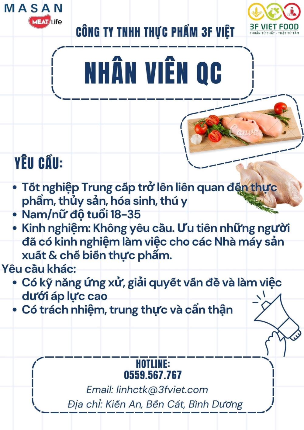 CÔNG TY TNHH THỰC PHẨM 3F VIỆT thông báo tuyển dụng QC ngành công nghệ thực phẩm