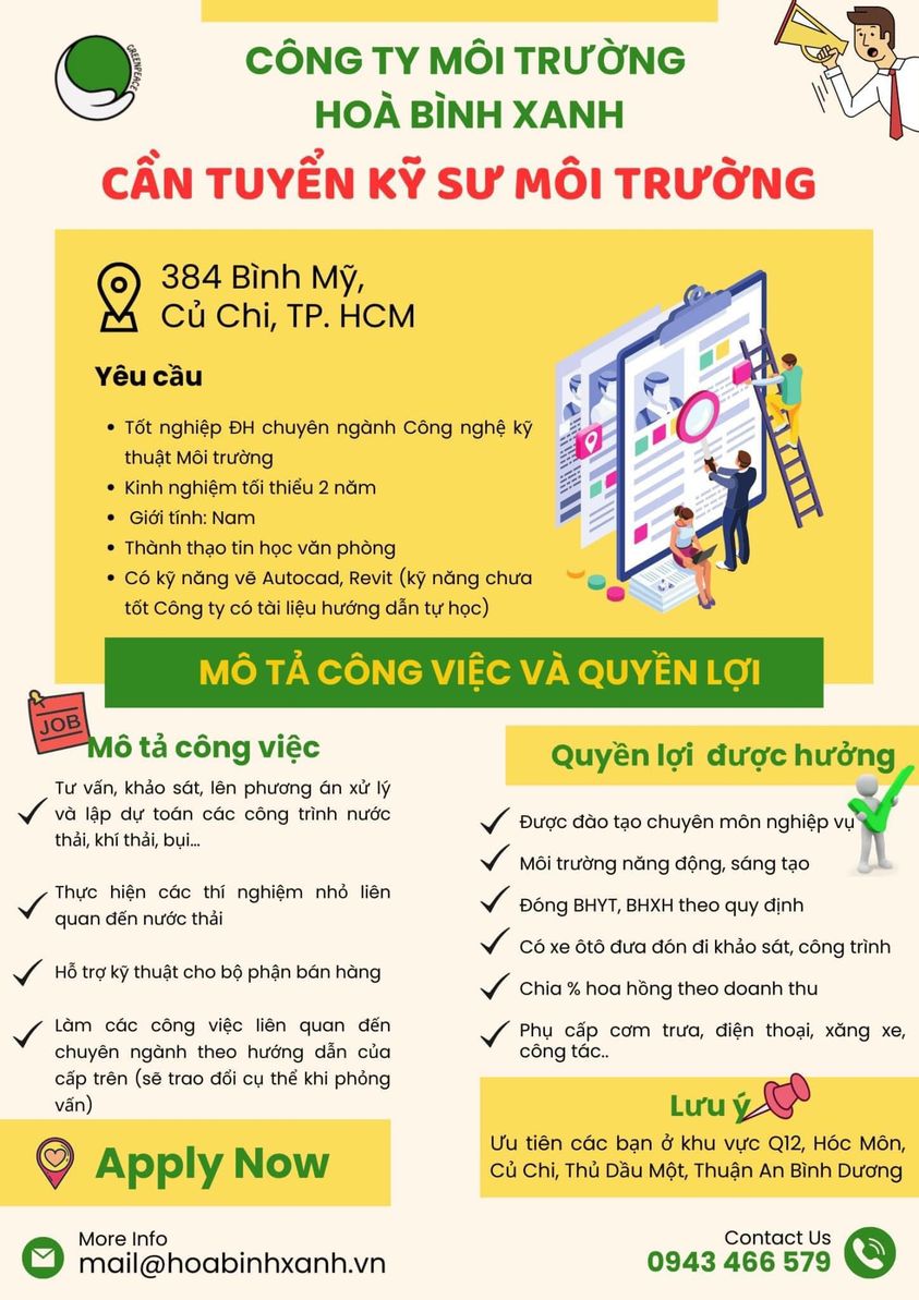 Công Ty Môi Trường Hòa Bình Xanh tuyển dụng Kỹ sư môi trường