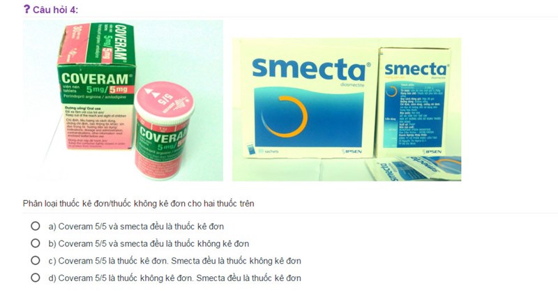 Một câu hỏi bài tập trên trang web học thực hành nhà thuốc