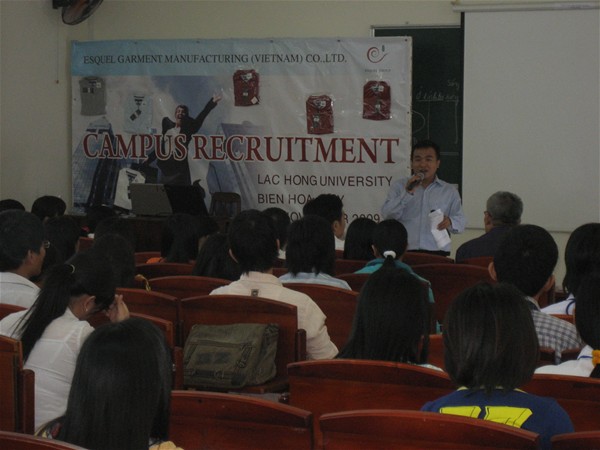 Sáng ngày 21/11/2009 Trung tâm Quan hệ Quốc tế tư vấn du học & Việc làm phối hợp với Công ty ESQUEL Khu công nghiệp Việt Nam Singapore – Bình Dương tổ chức hội thảo “Việc làm và tuyển dung sinh viên sắp/đã ra trường” tại giảng đường B305 – Trường Đại học Lạc Hồng.