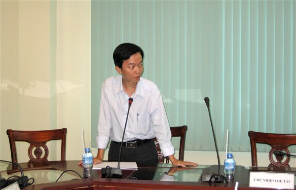 Tác giả ThS. Trần Phú Cường báo cáo đề tài “Xây dựng mô hình vật lý chứng minh ánh sáng có tính chất sóng với sự trợ giúp của máy vi tính”.