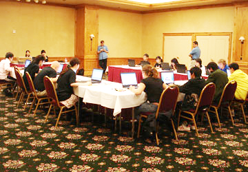 Hình ảnh phòng thi vòng chung kết Microsoft Office World Champion 2010.