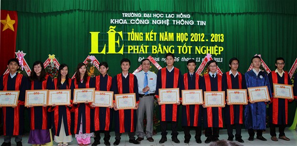 Sáng ngày 26-11-2013, tại hội trường A301, CS1, Trường Đại học Lạc Hồng, Khoa Công nghệ thông tin (CNTT) vừa tổ chức Lễ Tổng kết năm học 2012-2013, phát bằng tốt nghiệp cho hơn 170 tân kỹ sư.