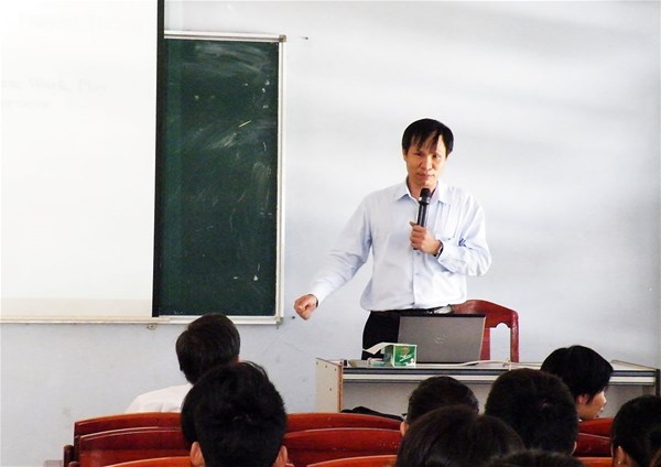 PGS.TS.Trần Văn Lăng, Trưởng Khoa CNTT trình bày tại buổi gặp mặt.