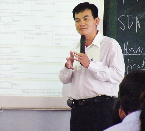 ThS. Phạm Công Xuyên, Phó Khoa CNTT trình bày các nội dung liên quan đến ngành Kỹ thuật phần mềm.