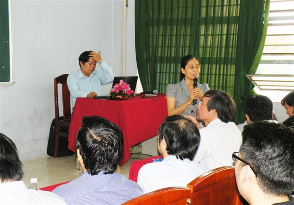 Cô Trương Thị Đức (hình phải), Giáo vụ khoa trao đổi với các sinh viên về các vướng mắc (như đăng ký học lại, số tiết các môn học…) có thể gặp phải trong các môn học có thể gặp phải trong quá trình học tập tại Khoa CNTT Trường Đại học Lạc Hồng. Cô Nguyễn Thị Liễu (hình trái), Quản sinh Khoa CNTT phổ biến đến sinh viên về các qui chế, qui định, chế độ khen thưởng - kỷ luật của Trường.