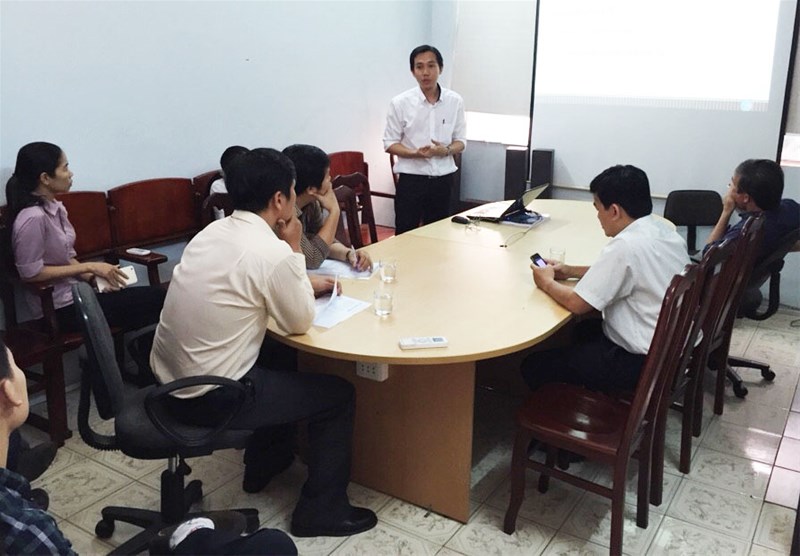 ThS. Chu Nguyên Hoàng Minh đang trình bày sáng kiến kinh nghiệm của nhóm.