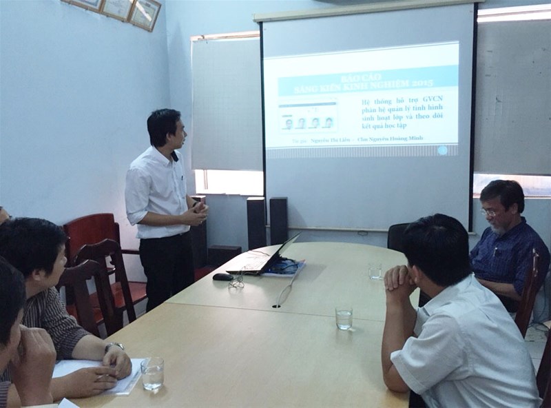 Hội đồng lần này đánh giá cho một sáng kiến kinh nghiệm của thầy Chu Nguyên Hoàng Minh và cô Nguyễn Thị Liễu với “Hệ thống hỗ trợ Giáo viên chủ nhiệm phân hệ quản lý tình hình sinh hoạt lớp và theo dõi kết quả học tập”.