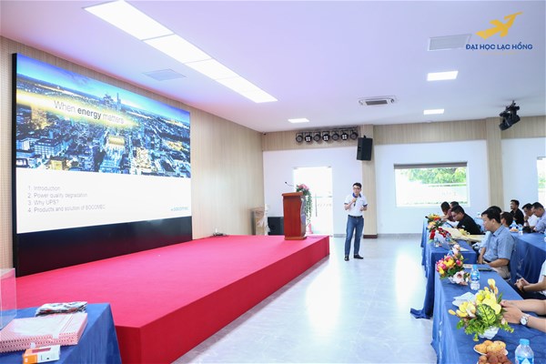 Tại đây, quý thầy cô và các bạn sinh viên được lắng nghe những chia sẻ về khái niệm về cách mạng công nghiệp 4.0 cũng như tầm ảnh hưởng của cuộc các mạng này, về những thách thức, cơ hội và giải pháp cho các doanh nghiệp thời đại mới như: Giải pháp lưu trữ mạnh mẽ, hiệu quả và tự bảo vệ với giải pháp lưu trữ của IBM, Giải pháp dữ liệu trong thời đại 4.0 của Western D (Mỹ), Giải pháp lưu trữ Server bằng hệ thống UPS Socomec qua các diễn giả là đại diện các doanh nghiệp về công nghệ.
