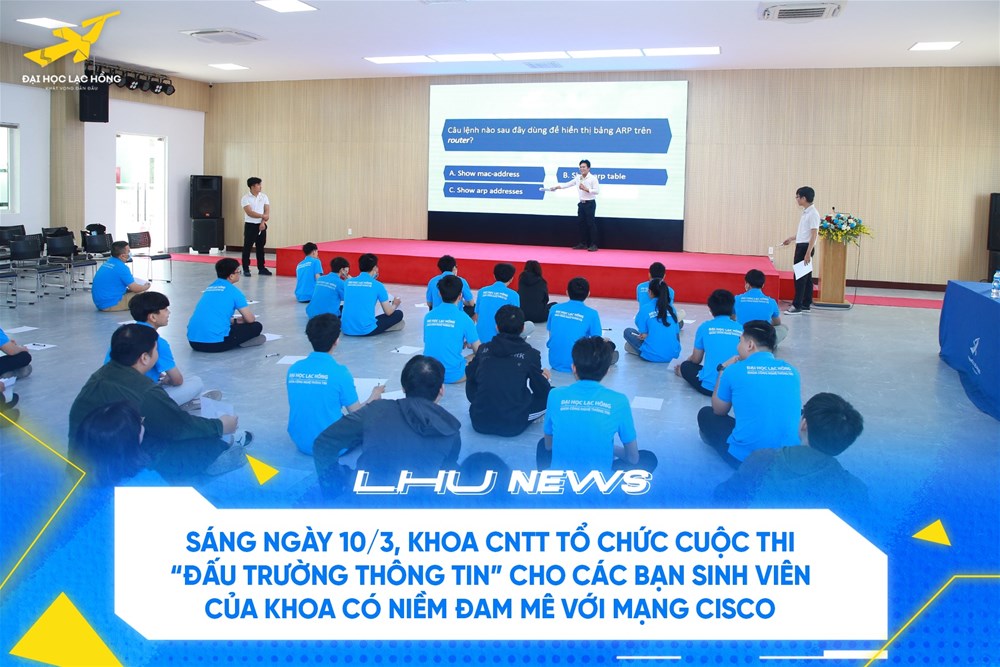 Vào sáng ngày 10/03/2023 tại hội trường A301, cơ sở 1, khoa Công Nghệ Thông Tin Trường Đại Học Lạc Hồng tổ chức cuộc thi mạng dành cho các bạn sinh viên có niềm đam mê, học hỏi với môn Mạng máy tính. Tại đây các bạn sẽ được trau dồi thêm kiến thức và hiểu rõ hơn về hướng đi sau này.