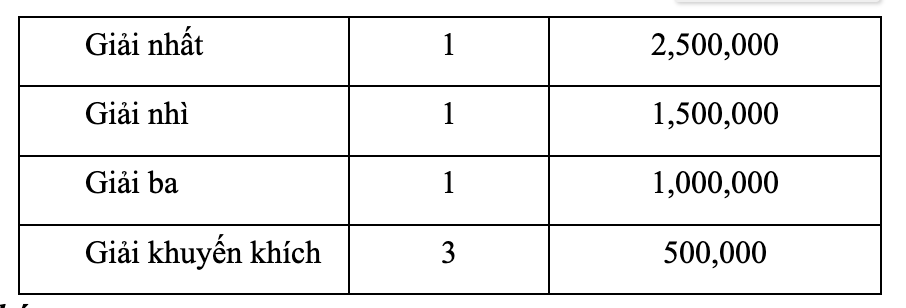 2. Thể lệ cuộc thi và cơ cấu giải thưởng: