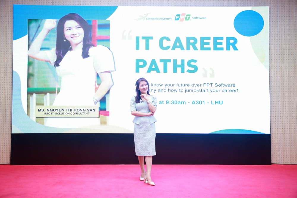 Vào ngày 13/4/2023, Khoa Công nghệ thông tin kết hợp cùng Trung tâm tuyển sinh và Quan hệ công chúng và khách mời diễn giả Thạc sĩ: Nguyễn Thị Hồng Vân thuộc Công ty TNHH Phần mềm FPT HCM tổ chức hội thảo chuyên đề về IT career pathes đến các bạn sinh viên K.CNTT tại hội trường A301