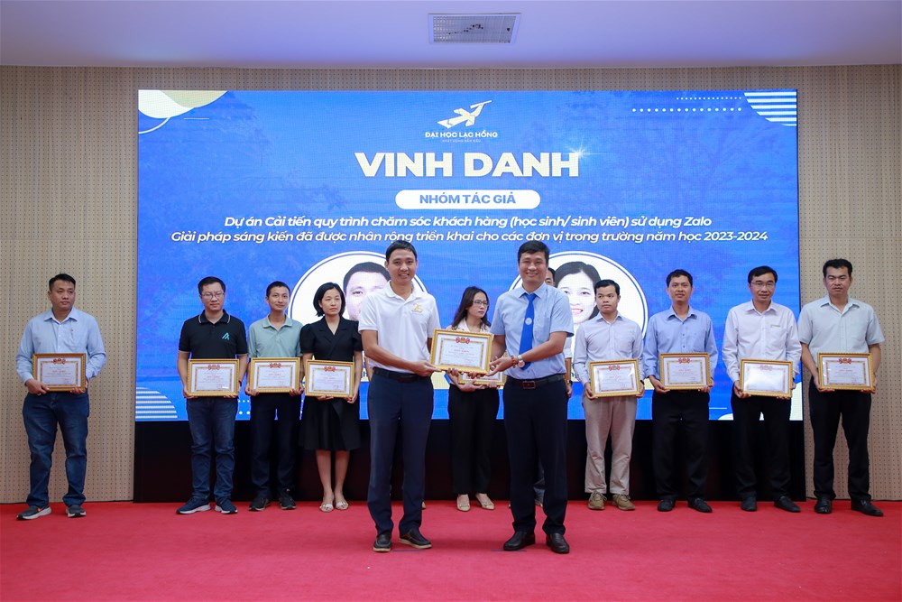 Ngày [17/7/2024], tại hội trường A301 của Trường Đại học Lạc Hồng, đã diễn ra Hội nghị Tổng kết và Vinh danh Khen thưởng Hoạt động Khoa học và Công nghệ, Kết nối Phục vụ Cộng đồng và Công tác Sinh viên năm học 2023-2024. Buổi lễ là dịp để tổng kết, đánh giá và vinh danh những tập thể, cá nhân có thành tích xuất sắc trong các hoạt động khoa học và công nghệ, cũng như những đóng góp quan trọng vào công tác phục vụ cộng đồng và hỗ trợ sinh viên.