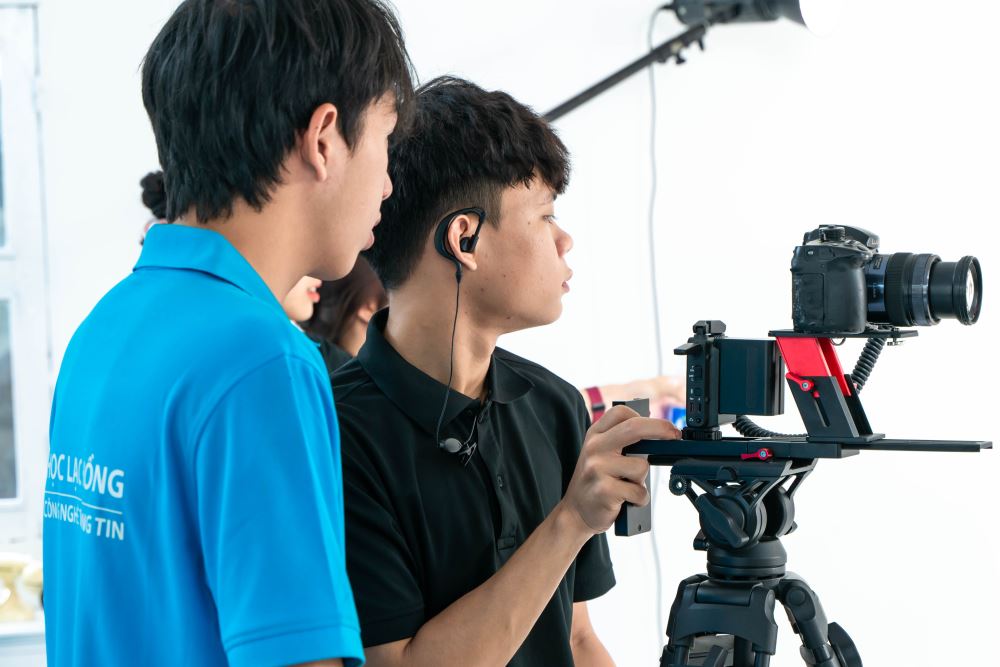 Sinh viên tham gia không chỉ được hướng dẫn bởi đội ngũ giảng viên giàu kinh nghiệm, mà còn có cơ hội trực tiếp thực hành ngay tại phim trường, sử dụng máy ảnh chuyên dụng, trải nghiệm các vai trò từ cầm máy, set góc, tạo bố cục ánh sáng, mẫu ảnh đến người xây dựng concept chụp hình trong không gian phim trường chuyên nghiệp.