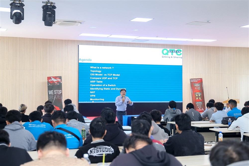 Nhằm trang bị cho sinh viên những kiến thức chuyên sâu và cập nhật xu hướng mới trong lĩnh vực quản trị và bảo mật mạng, Khoa Công nghệ Thông tin – Trường Đại học Lạc Hồng đã tổ chức thành công workshop tại hội trường A301, ngày 05/4/2025 với chuyên đề “Mạng máy tính: Bảo mật và Hệ thống mạng”.