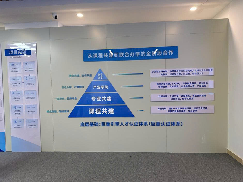 Biểu đồ tháp thể hiện chiến lược hợp tác toàn diện giữa doanh nghiệp và giáo dục, từ bước đồng xây dựng chương trình học đến liên kết đào tạo chuyên sâu