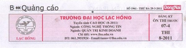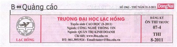 Hình ảnh quảng cáo của Trường trên báo Đồng Nai