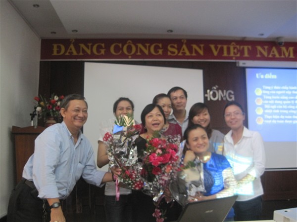 Các bạn cùng lớp tặng hoa chúc mừng cho học viên