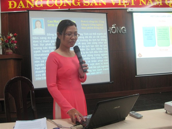 Học viên Cao Mai Thanh Hiền báo cáo đề tài "Một số giải pháp nâng cao năng lực cạnh tranh Công ty Cổ phần Du lịch Đồng Nai đến năm 2015"