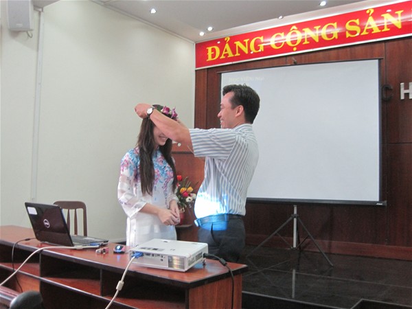 Các thạc sĩ Quản trị kinh doanh khóa 1 đến chung vui và  trao vòng nguyệt quế cho các tân thạc sĩ