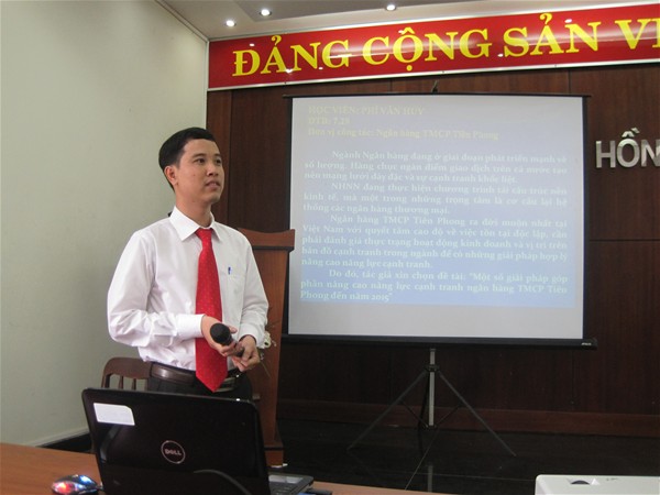 Các anh chị học viên ban đầu có phần hồi hộp trong lúc báo cáo nhưng sau đó đã tự tin khi trả lời những câu hỏi chuyên môn từ phía các thành viên hội đồng. Một số học viên đã trả lời xuất sắc các câu hỏi từ thành viên hội đồng và được các Thầy Cô đánh giá tốt về khả năng am hiểu đề tài, thu thập và xử lý số liệu đề tài đạt yêu cầu của luận văn thạc sĩ.