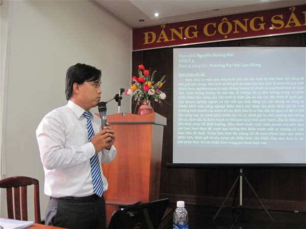 Sáng ngày 01/8/2012, Trường Đại học Lạc Hồng tổ chức buổi bảo vệ luận văn thạc sĩ cho các học viên cao học ngành Quản trị kinh doanh. Tham dự buổi bảo vệ có TS Nguyễn Văn Tân - Trưởng phòng Nghiên cứu khoa học - Sau đại học - Kiểm định chất lượng và các thầy cô trong hội đồng, cùng các học viên lớp cao học ngành Quản trị kinh doanh khóa 1, khóa 2 và khóa 3. Trước khi buổi bảo vệ bắt đầu, TS Nguyễn Văn Tân đã trao đổi và phổ biến cách thức làm việc của hội đồng chấm luận văn thạc sĩ ngày hôm nay.