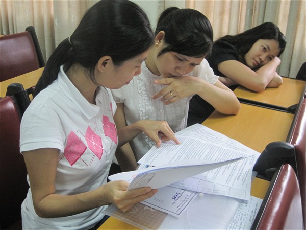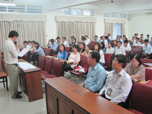 trao đổi cùng các cán bộ tham gia công tác thi tuyển sinh cao học khóa 4 năm 2012