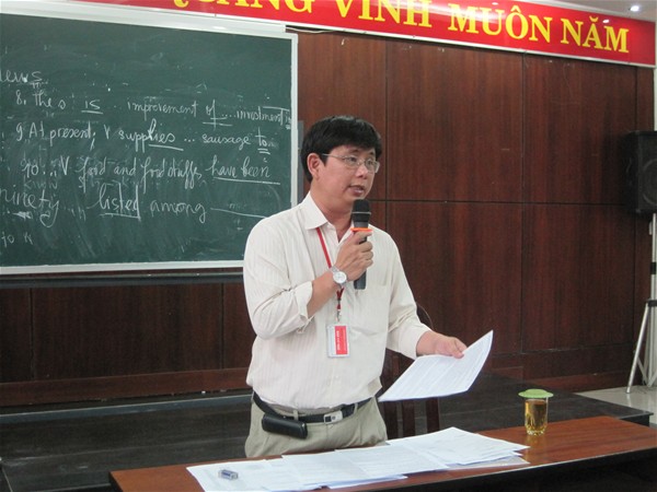 Thầy Lâm Thành Hiển- Phó Hiệu trưởng, Trưởng phòng Đào tạo đang phổ biến quy chế thi...