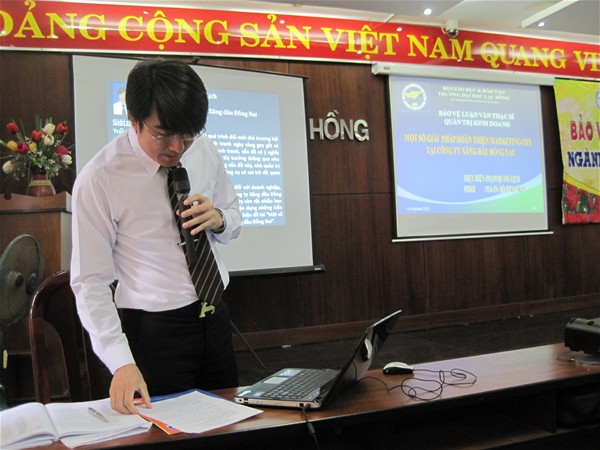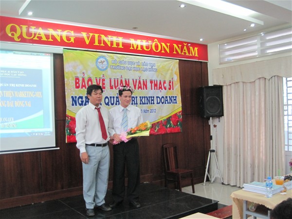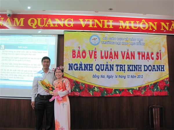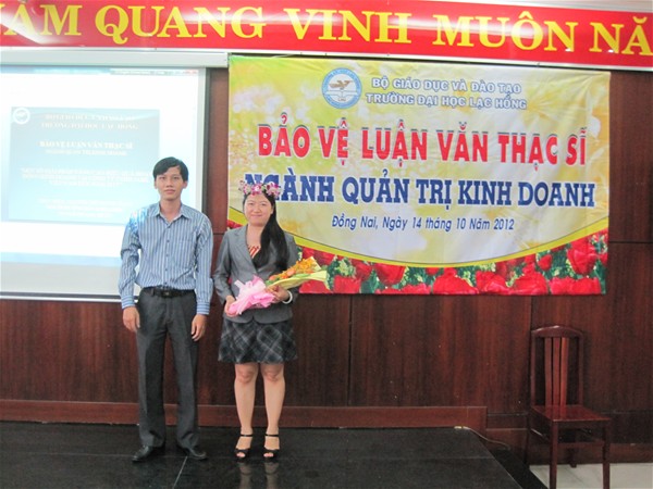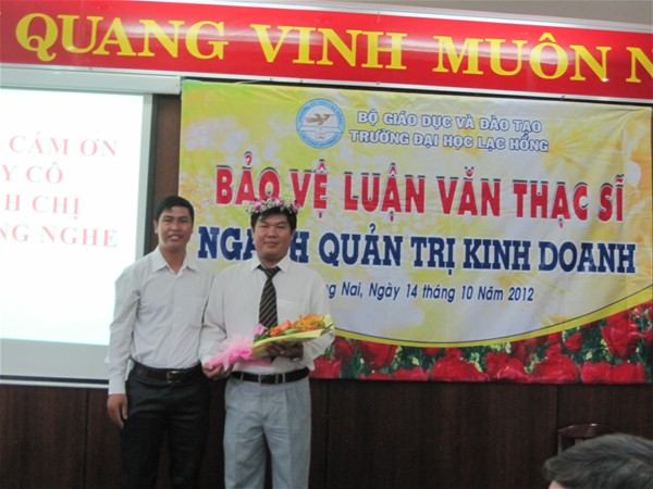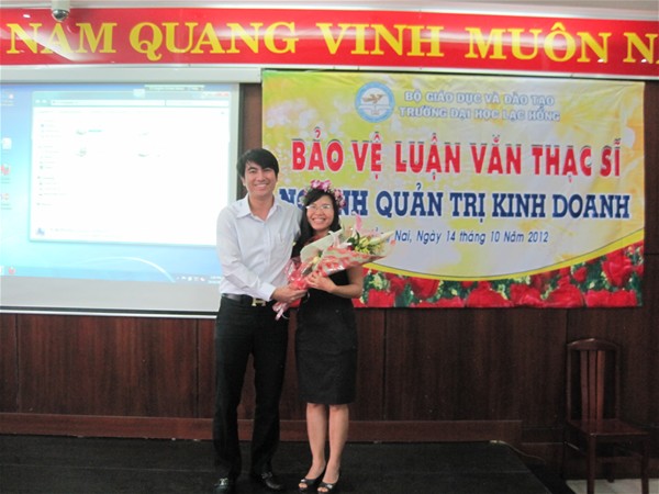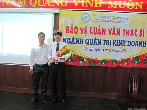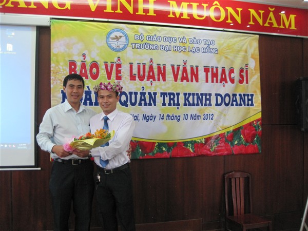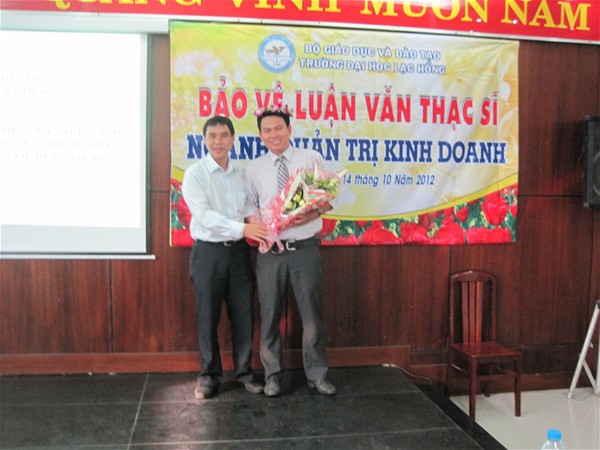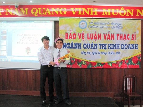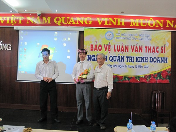 Sáng ngày 14/10/2012, Trường Đại học Lạc Hồng tiếp tục tổ chức bảo vệ luận văn thạc sĩ chuyên ngành Quản trị kinh doanh cho 11 học viên khóa 2010. Đến tham dự buổi bảo vệ luận văn thạc sĩ có thầy TS Nguyễn Văn Tân - Trưởng phòng Nghiên cứu khoa học - Sau đại học và các thầy cô trong hội đồng chấm luận văn thạc sĩ; cùng các học viên chuyên ngành Quản trị kinh doanh của các khóa 2009, 2010 và 2011.