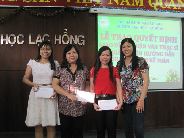Ngày 18/01/2013 và ngày 13/02/2014, Trường Đại học Lạc Hồng đã tổ chức Lễ trao quyết định giao đề tài luận văn thạc sĩ cho các học viên ngành Kế toán khóa 4 năm 2012.