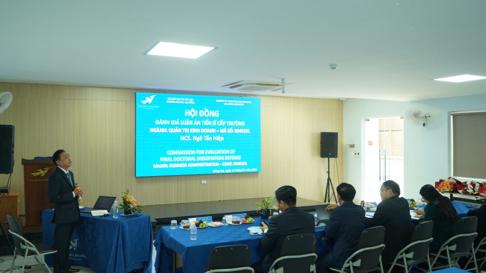 Sáng ngày 15/01/2024, tại Trường Đại học Lạc Hồng đã diễn ra Lễ bảo vệ luận án Tiến sĩ ngành Quản trị kinh doanh của nghiên cứu sinh (NCS) Ngô Tấn Hiệp (công tác tại Trường ĐH Văn Hiến), với đề tài “Ảnh hưởng của marketing xanh đến năng lực cạnh tranh và kết quả kinh doanh của doanh nghiệp: nghiên cứu trường hợp các doanh nghiệp nhỏ và vừa tại Thành phố Hồ Chí Minh”. Luận án được thực hiện dưới sự hướng dẫn khoa học của PGS.TS. Trần Đăng Khoa và TS. Nguyễn Văn Nam.