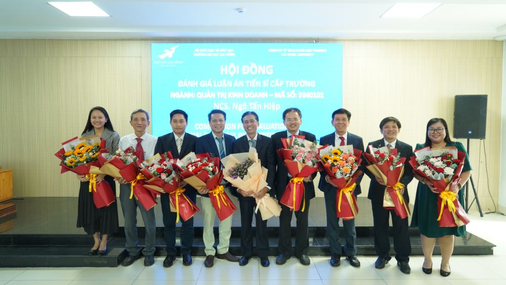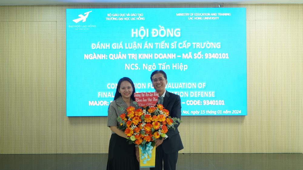 Sau khi nghe NCS trình bày luận án và trả lời các câu hỏi, Hội đồng đã thảo luận và thống nhất nội dung và hình thức của luận án đã đáp ứng đầy đủ yêu cầu của một luận án Tiến sĩ ngành Quản trị kinh doanh. Hội đồng và Khoa Sau đại học tặng hoa chúc mừng NCS. Ngô Tấn Hiệp bảo vệ thành công luận án Tiến sĩ cấp Trường ĐH Lạc Hồng.