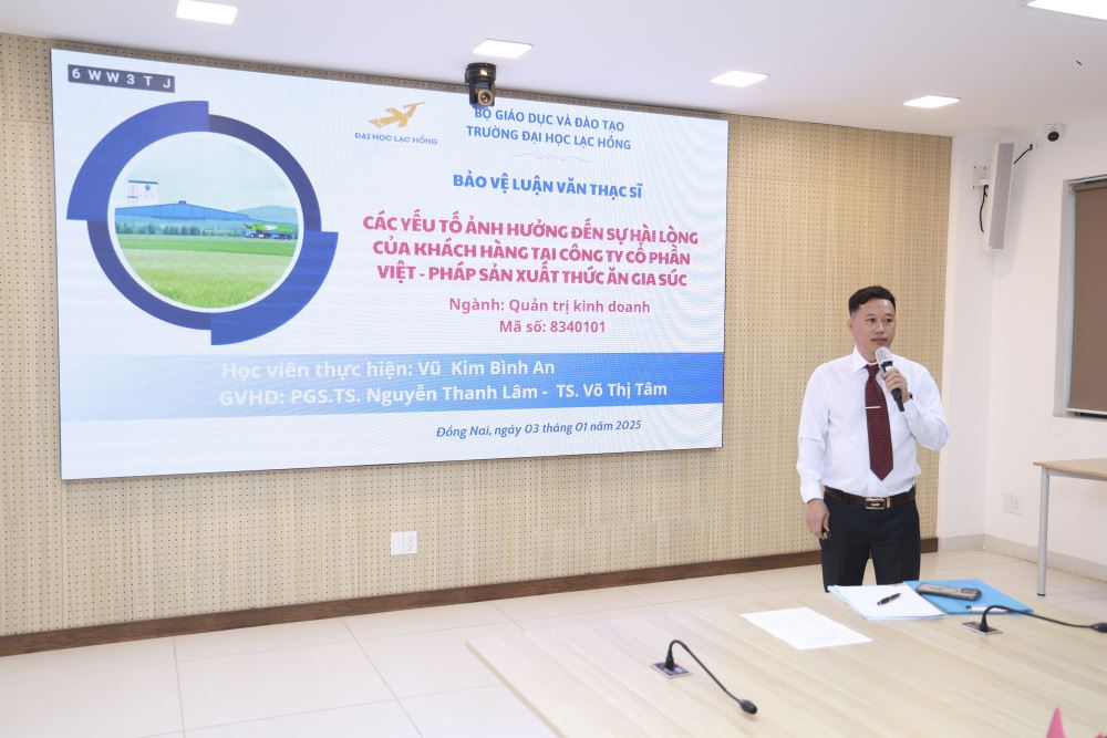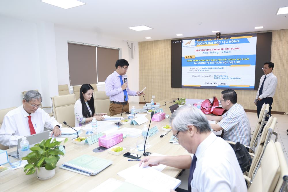 Ngày 03 tháng 01 năm 2025, tại phòng họp cơ sở 1 của Trường Đại học Lạc Hồng (LHU), 09 học viên ngành Quản trị kinh doanh đã xuất sắc hoàn thành và bảo vệ thành công luận văn thạc sĩ của mình. Buổi bảo vệ diễn ra trong không khí trang trọng và đầy tính học thuật, đánh dấu một bước ngoặt quan trọng trong hành trình học tập và nghiên cứu của các học viên.