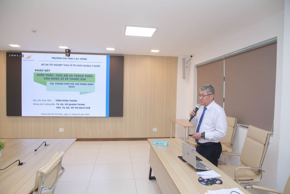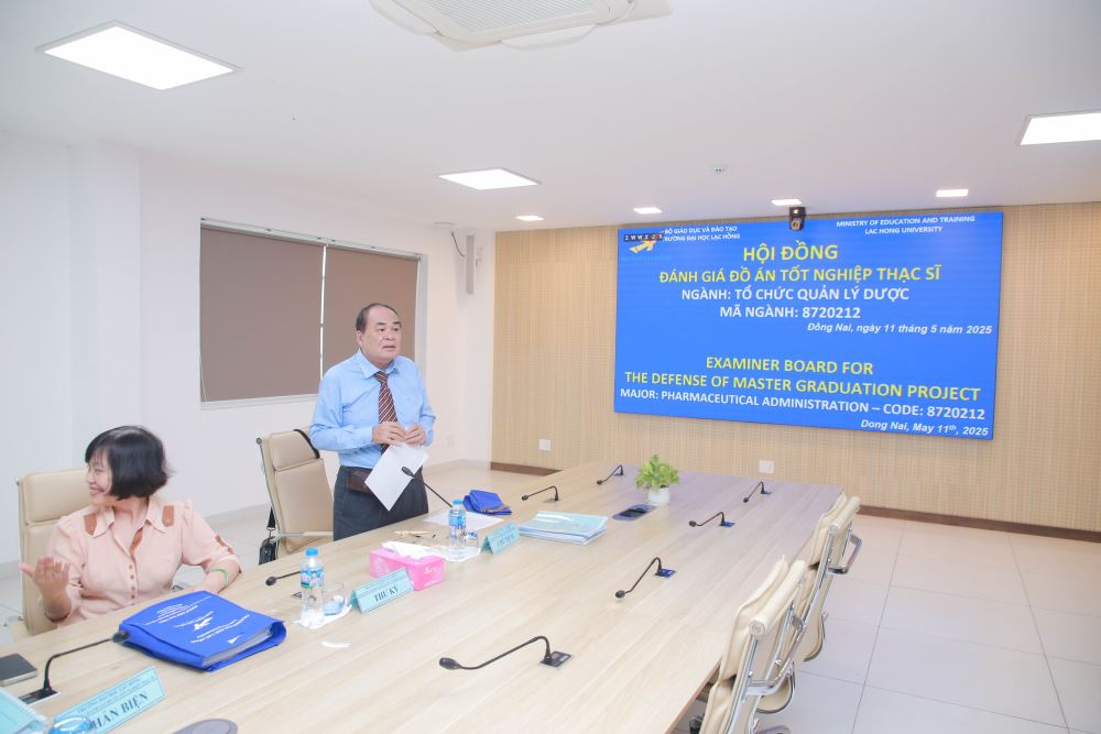 Ngày 11 tháng 5 năm 2025, tại phòng họp cơ sở 1, của Trường Đại học Lạc Hồng (LHU), 07 học viên ngành Tổ chức quản lý dược đã hoàn thành và bảo vệ đồ án tốt nghiệp thạc sĩ của mình. Buổi bảo vệ diễn ra trong không khí trang trọng và đầy tính học thuật, đánh dấu một bước ngoặt quan trọng trong hành trình học tập và nghiên cứu của các học viên.