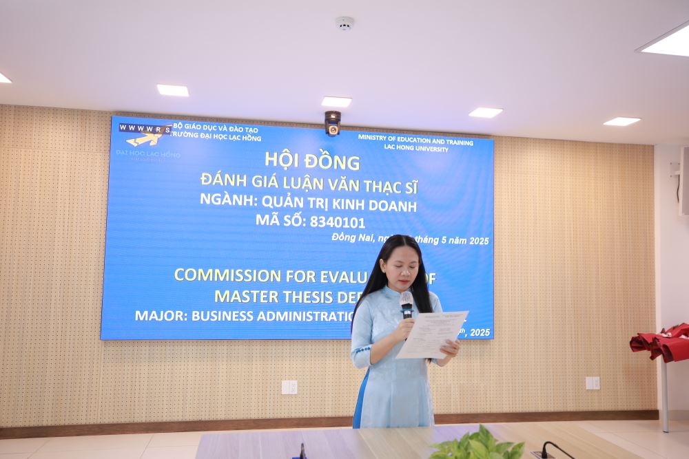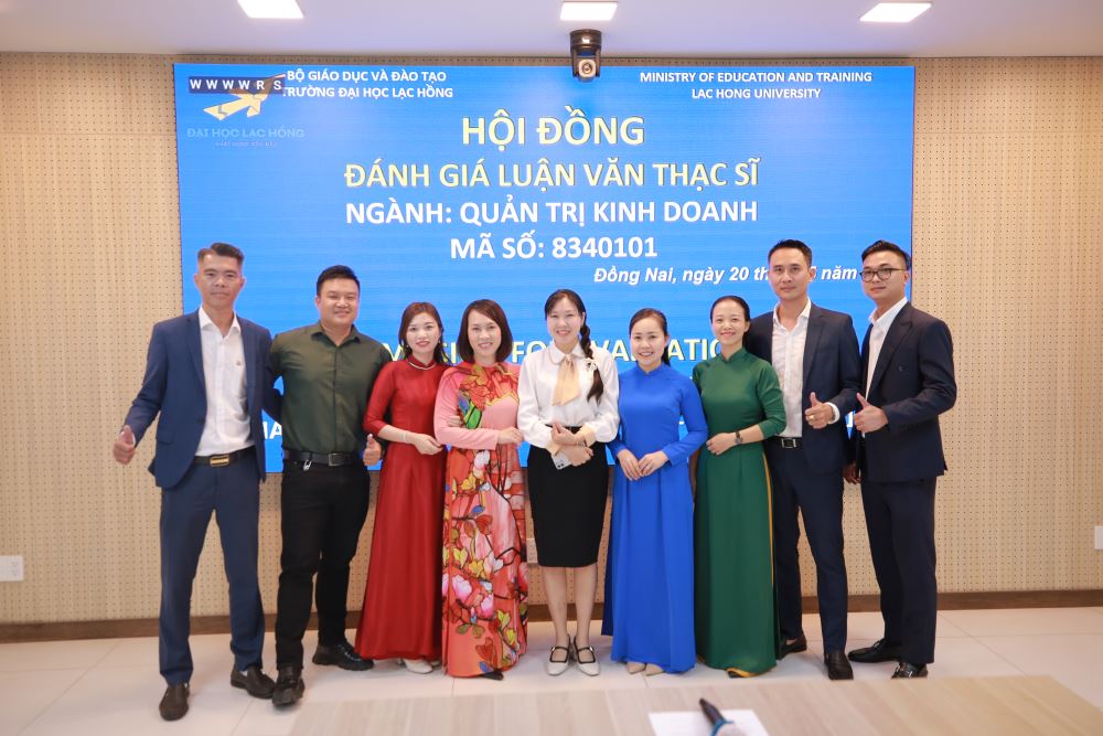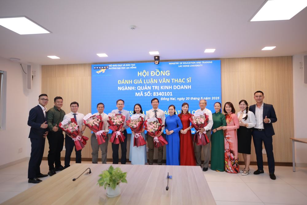 Ngày 20 tháng 05 năm 2025, tại phòng họp cơ sở 1 của Trường Đại học Lạc Hồng (LHU),  09 học viên ngành Quản trị kinh doanh đã xuất sắc hoàn thành và bảo vệ thành công luận văn thạc sĩ của mình. Buổi bảo vệ diễn ra trong không khí trang trọng và đầy tính học thuật, đánh dấu một bước ngoặt quan trọng trong hành trình học tập và nghiên cứu của các học viên.