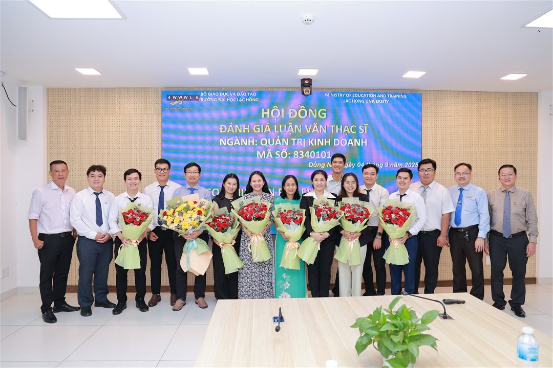 Ngày 04 tháng 09 năm 2025, tại phòng họp cơ sở 1 của Trường Đại học Lạc Hồng (LHU), 13 học viên ngành Quản trị kinh doanh đã xuất sắc hoàn thành và bảo vệ luận văn thạc sĩ của mình. Buổi bảo vệ diễn ra trong không khí trang trọng và đầy tính học thuật, đánh dấu một bước ngoặt quan trọng trong hành trình học tập và nghiên cứu của các học viên.