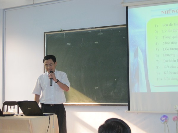 Thầy TS. Nguyễn Văn Tân nhận xét và góp ý cho từng đề tài.