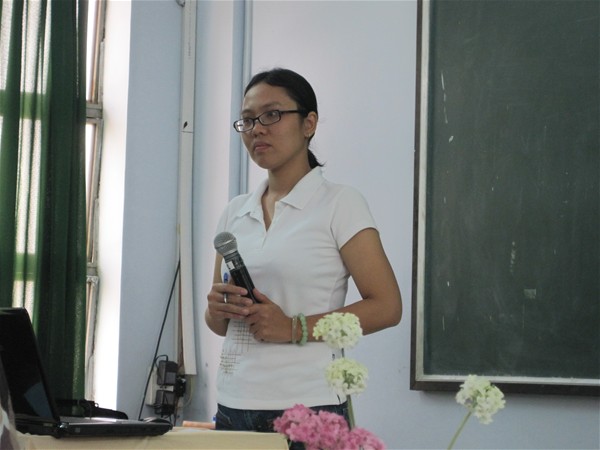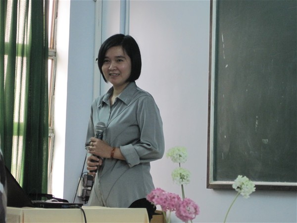 Cô PGS.TS Nguyễn Thị Liên Diệp nhận xét và góp ý cho từng đề tài.