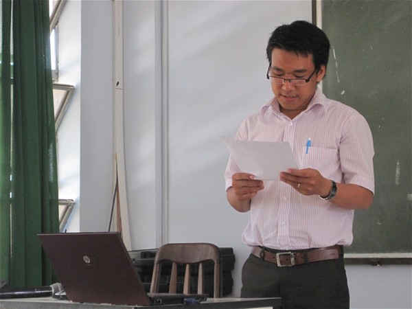 Buổi xét duyệt đề cương bắt đầu vào lúc 8h00 tại phòng B401 . Các thành viên Hội đồng xét duyệt gồm có: cô PGS.TS Nguyễn Thị Liên Diệp, thầy TS. Nguyễn Văn Tân - Trưởng phòng Sau đại học. Tuy gặp sự cố cúp điện nhưng các anh chị học viên vẫn cố gắng hoàn thành báo cáo đề cương của mình và nhận được những ý kiến đóng góp quí báu từ các thành viên Hội đồng.