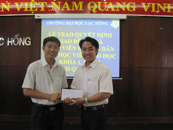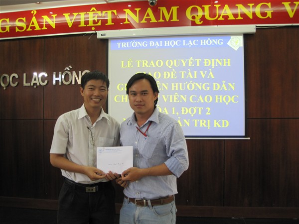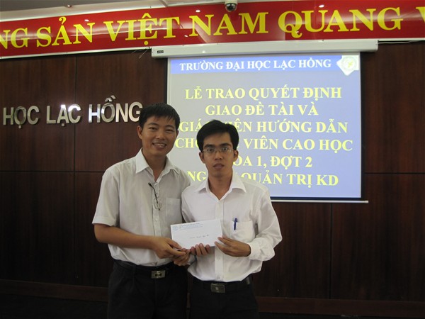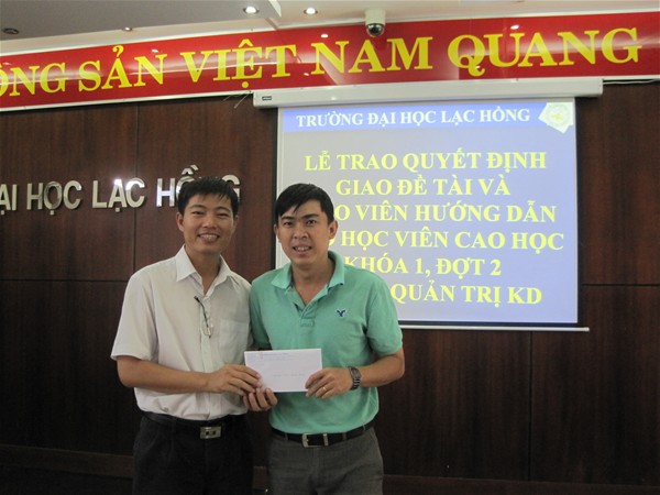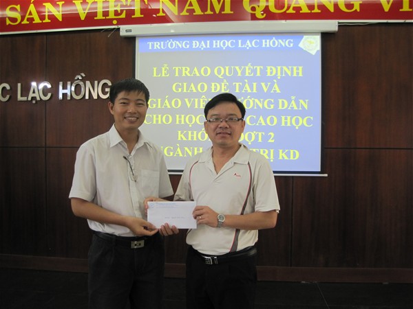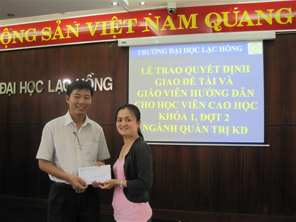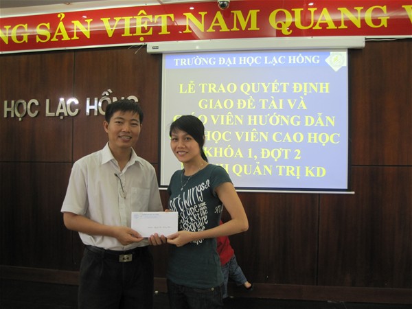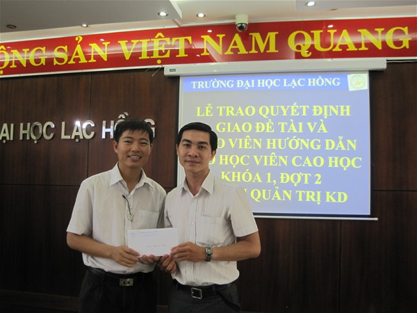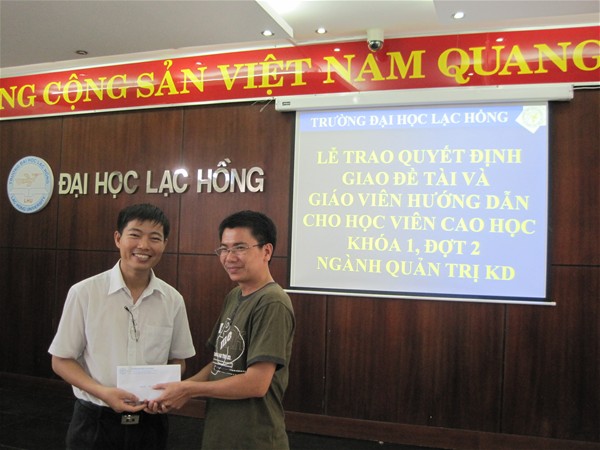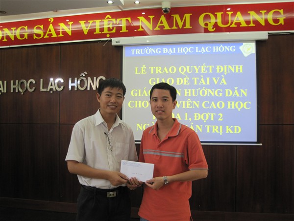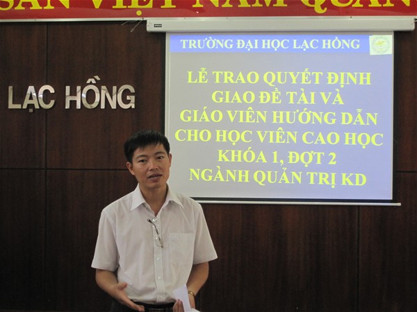 Trường Đại học Lạc Hồng thực hiện chương trình đào tạo cao học ngành Quản trị kinh doanh khóa 1 năm 2009 . Sau thời gian học tập hoàn thành các môn trong chương trình đào tạo, Trường đã tổ chức 2 đợt giao đề tài luận văn thạc sĩ cho các anh chị học viên.  Đợt 1, Trường đã trao quyết định cho 22 anh chị học viên vào ngày 17/10/2010. Và vào ngày 02/1/2011, Trường Đại học Lạc Hồng đã tổ chức buổi lễ trao quyết định giao đề tài luận văn thạc sĩ và giáo viên hướng dẫn đợt 2 cho 24 học viên lớp cao học Quản trị kinh doanh khóa 1.