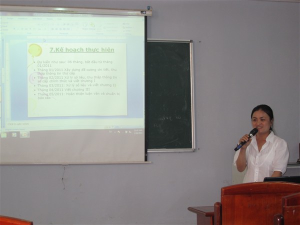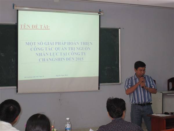 Sau khi nhận quyết định giao đề tài luận văn thạc sĩ, 24 anh chị học viên lớp cao học quản trị kinh doanh khóa 1 đã có thời gian làm việc, trao đổi với giáo viên hướng dẫn về đề tài. Và vào ngày 16/01/2011vừa qua, các học viên đã báo cáo đề cương đề tài của mình trước hội đồng khoa học của Trường.