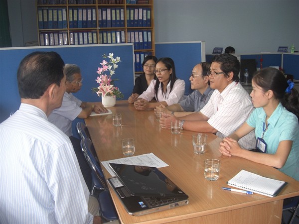 Ban lãnh đạo nhà trường đang thăm hỏi các chuyên gia Nhật Bản