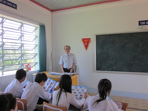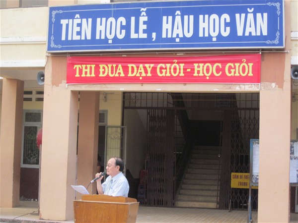 Thầy Diệp Cẩm Thu tư vấn dưới cờ tại Trường THPT Tân Bình
