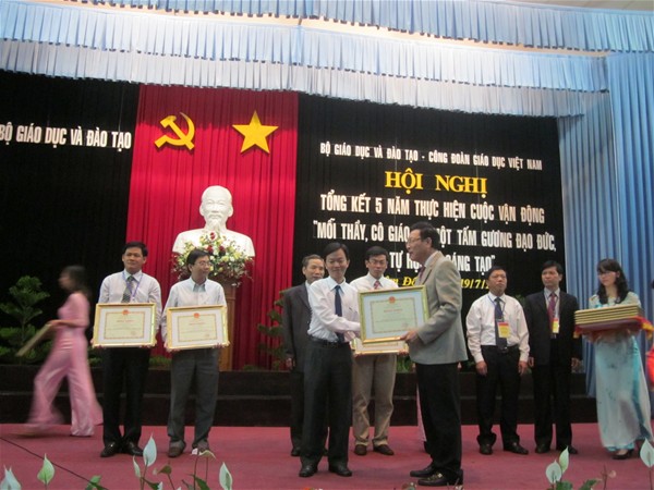 Tại Hội nghị Tổng kết 5 năm thực hiện Cuộc vận động, đại diện Trường Đại học Lạc Hồng – Thầy Trần Phú Cường – Giảng viên khoa CN Hóa – Thực phẩm đã vinh dự được Bộ GD&ĐT và CĐGD Việt Nam đã tặng Bằng khen vì đã có thành tích xuất sắc tham gia cuộc vận động.
