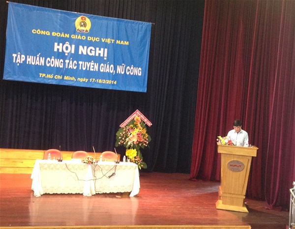 Nhằm nâng cao chất lượng công tác tuyên giáo, công tác nữ công tại các Công đoàn cơ sở, vào 2 ngày 17, 18/3/2014 CĐGD Việt Nam tổ chức Hội nghị tập huấn công tác tuyên giáo, công tác nữ công tại Trường Đại học Ngoại ngữ - Tin học Tp. Hồ Chí Minh. Về phía Công đoàn trường Đại học Lạc Hồng có TS Diệp Cẩm Thu – Chủ tịch Công đoàn trường và Cô Hồ Thị Hải Yến - Ủy viên ban thường vụ Công đoàn – Trưởng ban nữ công đã đến dự hội nghị.