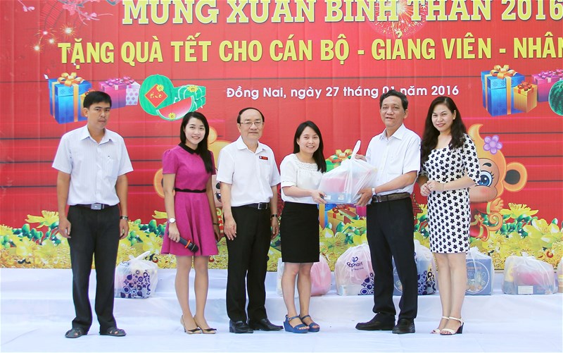 Nhằm nhân rộng chuỗi hoạt động chăm lo đời sống của công đoàn viên, ngày 27/01/2016 (18/12/2015 ÂL) đại diện Ban Giám Hiệu, Ban Chấp hành Công đoàn Trường (BCH) đã tổ chức tặng 518 phần quà Tết Bính Thân - 2016 cho công đoàn viên của nhà trường.