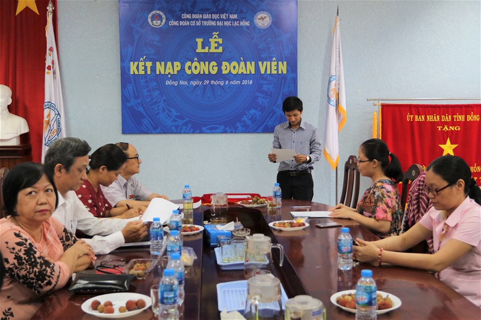 Đại diện Ban Chấp hành Công đoàn trường ĐH Lạc Hồng, Thầy Diệp Cẩm Thu đã chúc mừng và trao Quyết định kết nạp số 34/QĐ-CĐ ngày 23/6/2018 đến toàn thể Công đoàn viên mới. Cô Lê Thị Thu Hương thay mặt BTV Công đoàn Cơ sở đã chia sẻ để các Công đoàn viên mới hiểu rõ hơn về cơ cấu tổ chức, về chức năng nhiệm vụ, quá trình xây dựng và phát triển cũng như những kết quả tốt đẹp mà Công đoàn Cơ sở Nhà trường đã đạt được kể từ khi thành lập đến nay. Cô bày tỏ hy vọng các Công đoàn viên mới với trình độ, sự quyết tâm sẽ tạo ra năng lực, lan tỏa sức trẻ giúp đẩy mạnh các hoạt động Công đoàn trong thời gian tới. Qua phần chia sẻ thêm của Thầy Nguyễn Văn Nam (Phó Chủ tịch Công đoàn), bên cạnh những trách nhiệm và nghĩa vụ mà CĐV phải thực hiện thì Thầy cũng giúp Công đoàn viên mới hiểu thêm về những quyền lợi mà người Đoàn viên Công đoàn được hưởng khi gia nhập tổ chức Công đoàn Nhà trường và những quyền lợi trong quy định của Điều lệ Công đoàn Việt Nam.