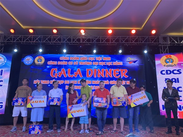 trao thưởng cho các đội đoạt giải trong chương trình team building tại Đêm Gala