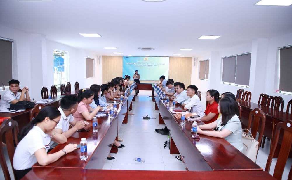 Hình 1: Đ/c Đặng Đại Hùng – Chủ tịch Công đoàn Trường Đại học Lạc Hồng, truyền đạt thêm về quyền lợi và nhiệm vụ của Công đoàn viên trong quy định Điều lệ Công đoàn Việt Nam.